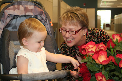 My mom is one funny bunny. Or, should I say that we finally outfoxed the fox?? We’ve been trying for FOUR months, people, to surprise her on her birthday. We didn’t get the party done, but that’s another blog post. BUT. My dad is one amazing guy. He bought her 60 roses. Yep, 60. They were gorgeous. He, Daniel, Clare and I were oh-so-sneaky and surprised her at work on Tuesday. The look on her face, as the MC folks say, was priceless.