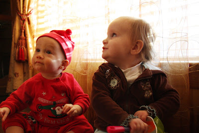 Great pictures Kathryn. When Alex is older I am sure he will not like that we put him in that hat:) The girls Christms Eve dresses are super cute.