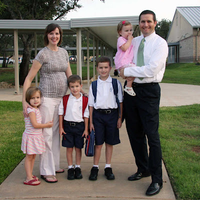 After the family picture – yes, you knew we’d do it – Will beelined for his classroom. Can I tell you that almost brought me to tears? If you remember this post, you know that both the boys started a new school this fall. Funny how us mom’s worry about all sorts of things, when our kids just take most of them in stride. I am learning that it’s all a matter of perspective. We’re fortunate and quite blessed that my sister-in-law works at the school and her office is just a few doors down from Will’s classroom.