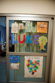 Interestingly, we’ve noticed there aren’t too many male nurses in peds…in fact, Luke has only had three and they were all great. We had a “Luke Tree” in the NICU where each medical professional that cared for Luke filled out a leaf and affixed it to his tree. I’m kicking myself for not making more leaves for his subsequent stays. Maybe I’ll get organized and do it for the next surgery.