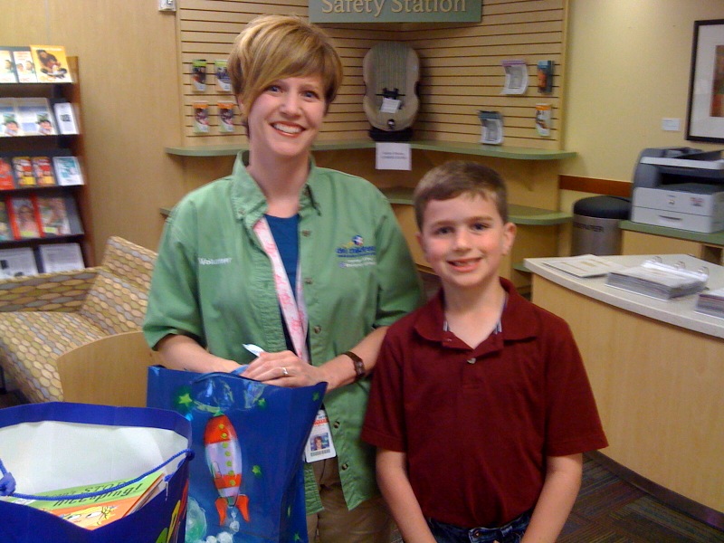 On Good Friday, as part of our family service project during Lent, we trekked up to Dell and donated the books. It was great. All in all, I think we donated about 70 books. I’m quite positive there’s a very happy patient, happily reading a book, because of all that generosity. Now that’s something to celebrate.
