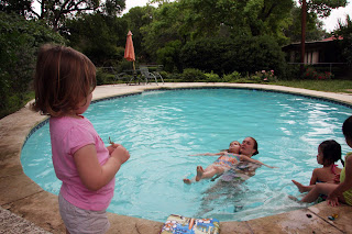 ALG had swim lessons the last couple of weeks and really did a fantastic job. Last summer it was all nuts, so nobody got swim lessons. This year, we were blessed to find a great college student, home from Texas Tech, that taught lessons at her home pool. There was only one other girl in the class, so they were practically one-on-one. I was so proud of her.