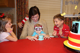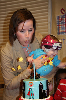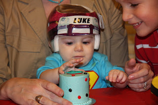 Then, we partied. Lots of good fellowship, food (hat tip to the hubby for the ginormous bowl of guacamole that lasted like 10 seconds), hugs, smiles and singing. At first, Luke was totally keen to the singing. That quickly turned sour when we placed his smash cake in hands reach.