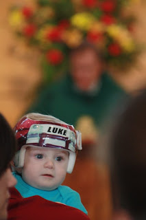 My parents and cousin Mickey got here early on party day to help us with all the little details and then we began the most awesome day with Mass at St. Vincent de Paul. For a split second I was really worried we’d walk in and see like 10 people, most of whom would be relatives. It was such a lovely Mass, surrounded by some really amazing people who have supported us in our journey with Luke this past year. Interestingly (to me I guess), the only tears I shed were during that hour. To me, that seemed appropriate. We joked that with all the babies in attendance, and how chatty they were, that Luke’s support group came out in full force.