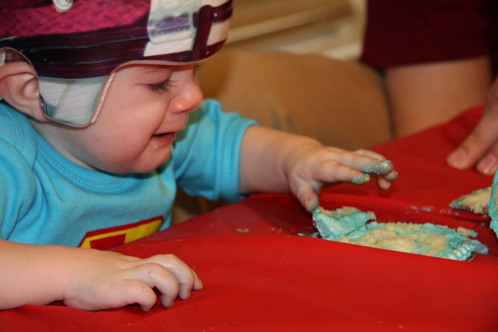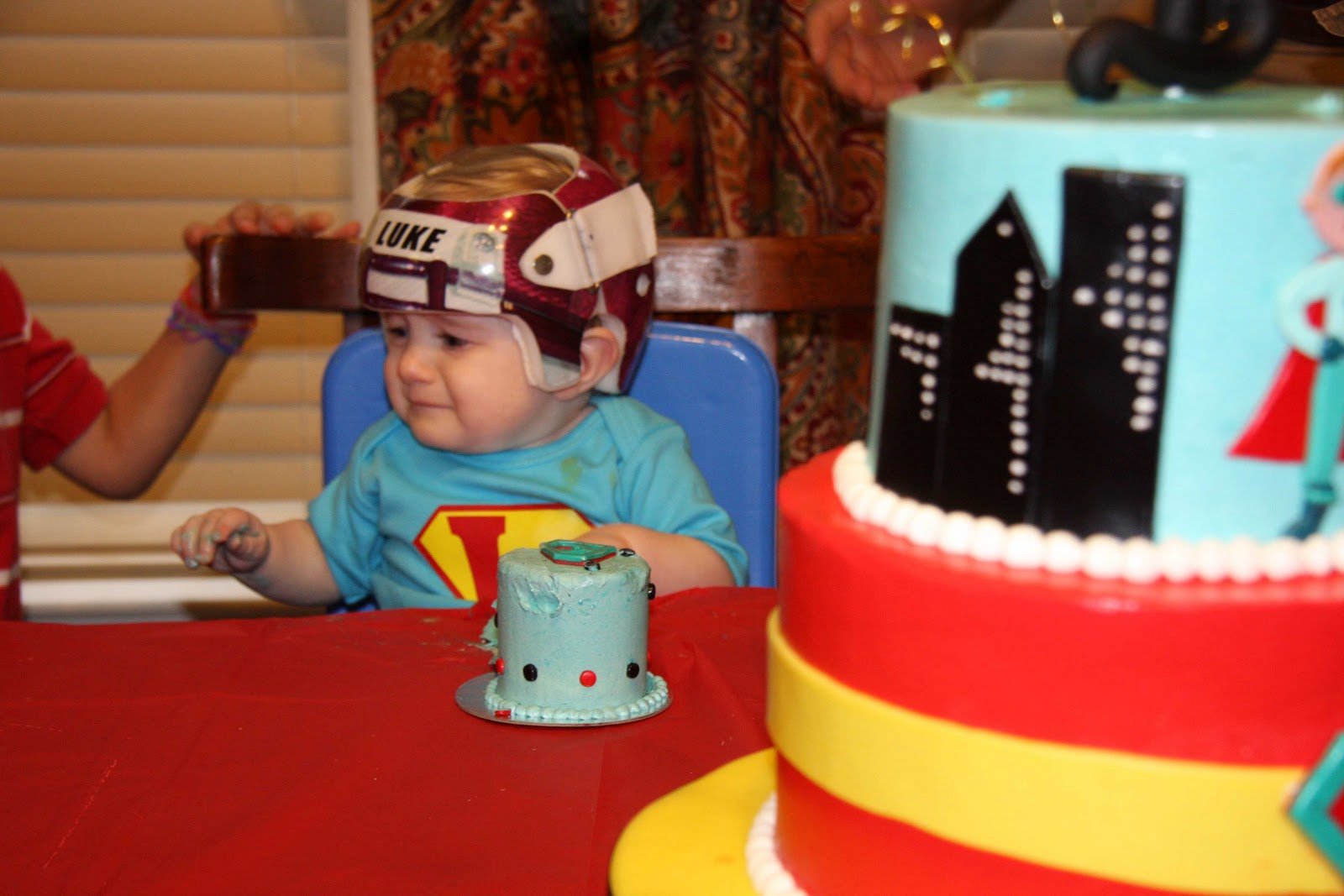 Then, we partied. Lots of good fellowship, food (hat tip to the hubby for the ginormous bowl of guacamole that lasted like 10 seconds), hugs, smiles and singing. At first, Luke was totally keen to the singing. That quickly turned sour when we placed his smash cake in hands reach.
