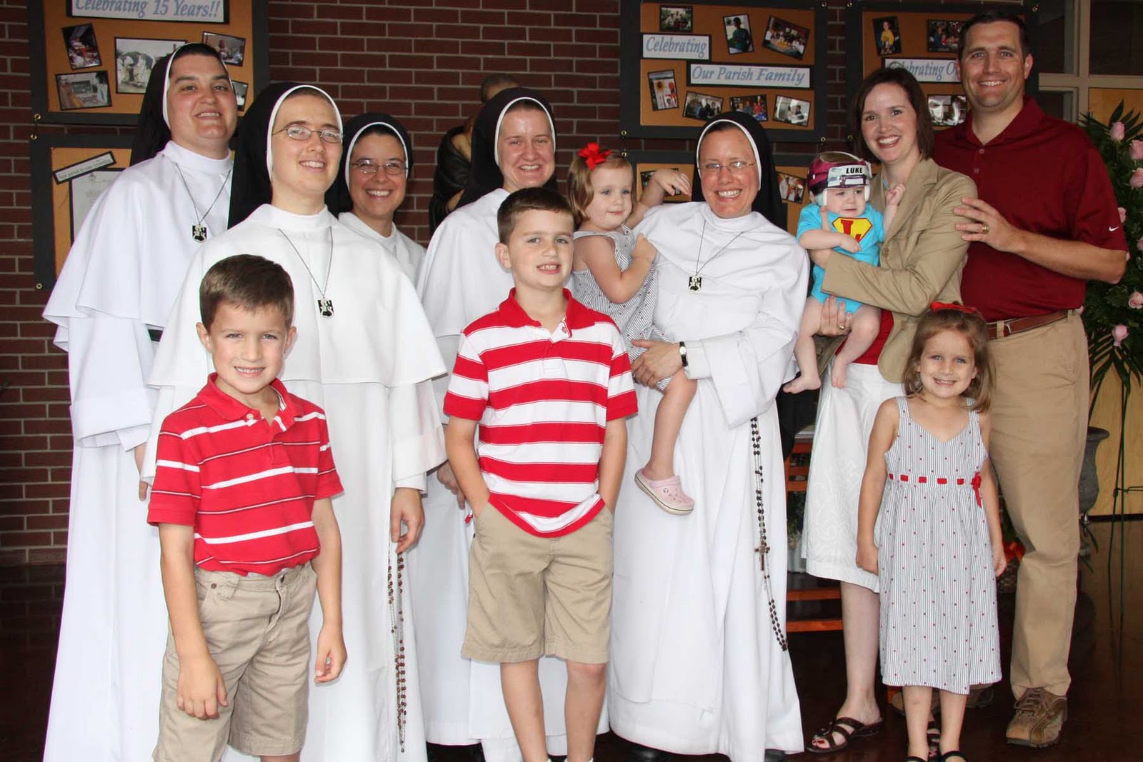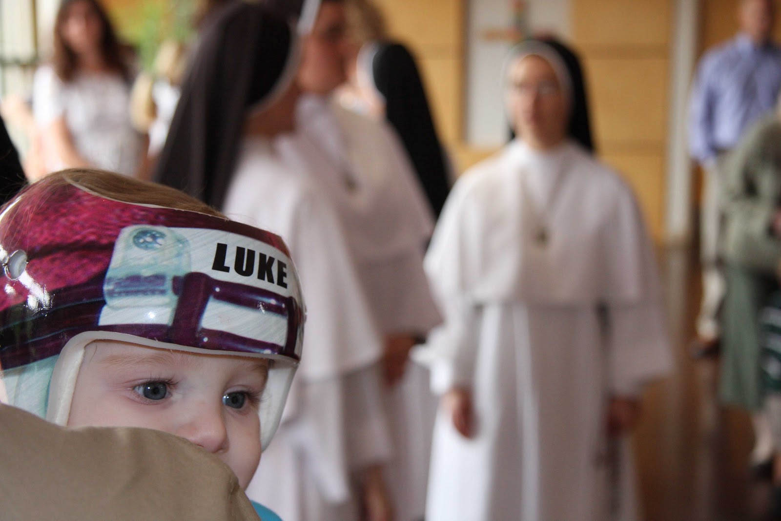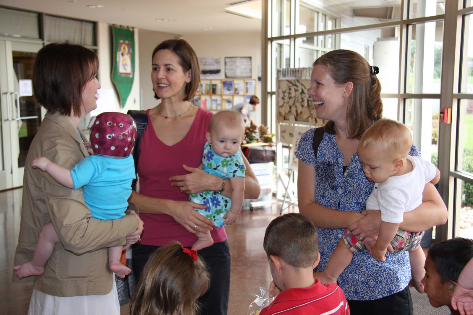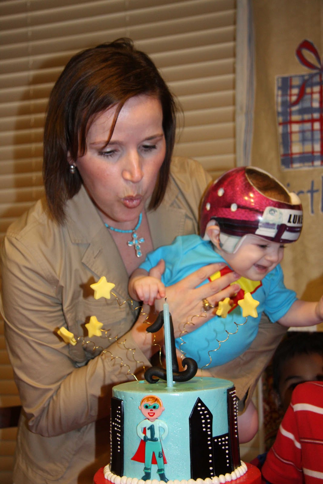 My parents and cousin Mickey got here early on party day to help us with all the little details and then we began the most awesome day with Mass at St. Vincent de Paul. For a split second I was really worried we’d walk in and see like 10 people, most of whom would be relatives. It was such a lovely Mass, surrounded by some really amazing people who have supported us in our journey with Luke this past year. Interestingly (to me I guess), the only tears I shed were during that hour. To me, that seemed appropriate. We joked that with all the babies in attendance, and how chatty they were, that Luke’s support group came out in full force.