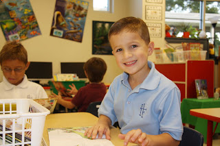 Mischevious John Paul. He yelled out, “I got the teacher I wanted!” on the first day. And, I’m almost certain I heard her shout, “I got the John Paul I wanted!” HAHA. There are actually four John’s in her class, two of which are John Paul’s. What are the odds? Um, high if you’re in a Catholic school, I guess.