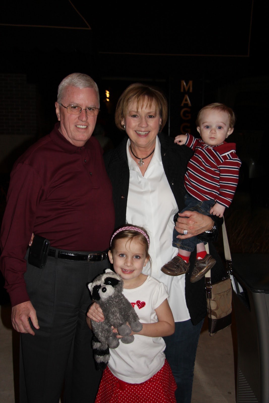 Then, we topped off the weekend with a Valentine dinner at Maggiano’s with the grandparents, aunt, uncle and cousin. Buono note!