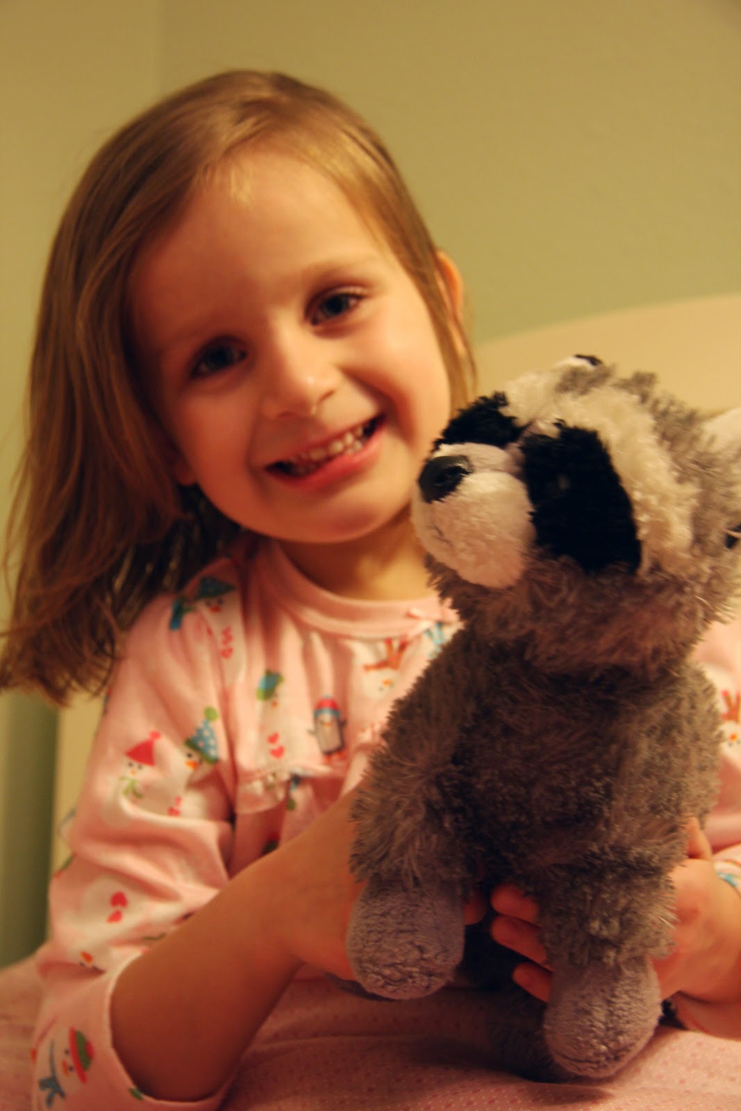 This past weekend, Anna-Laura was chosen to bring home the class pet racoon, Chester. He’s a delightful fellow, hardly ever complained and slept wonderfully. Maybe his good habits will set an example? I do know that he instilled some mighty good behavior in a certain 5-year-old princess. Not naming any names.