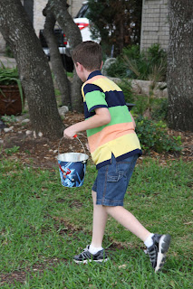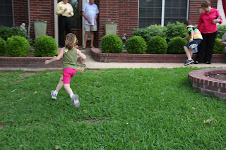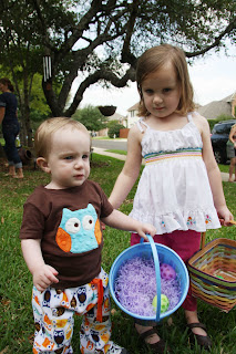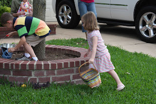 Sunday evening: The “hunt”. This time the eggs had money (spare change), not candy. It got serious.