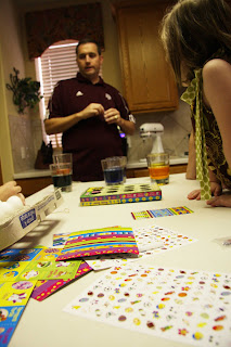 Sunday still morning :): Easter egg dying! Scott is the egg pro.