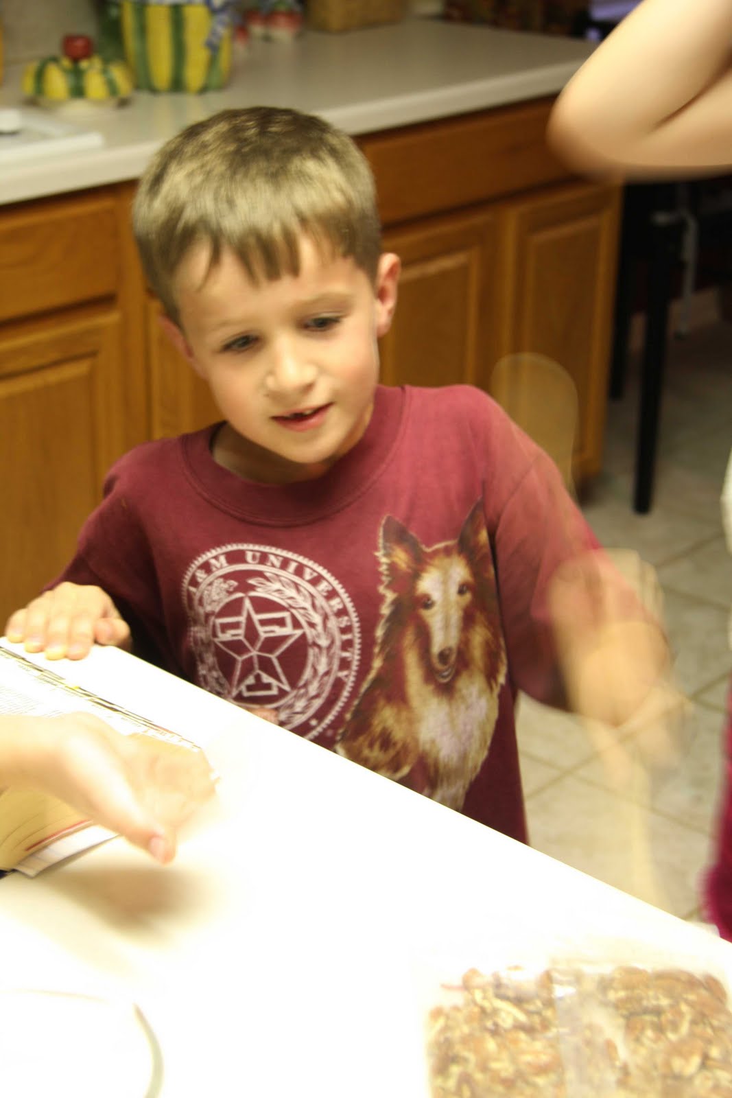 Saturday Night: Baking resurrection cookies. They were awesome! John Paul was “beating” the pecans as we read scripture and talked about the Roman guards beating Jesus.