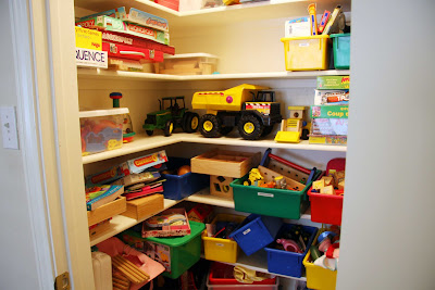 It looks great, but I was wondering if you have a dedicated play space where you can keep the toys? We have tons of organized bins and a large storage piece of furniture in our playroom. I find it is easier to keep the toys out in the open where the kids can get to them as opposed to in a closet. I know Moms today don't want to look at the toys, but my kids are able to put them away and take them out without any assistance.